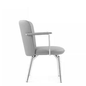 The SLIM Leather Multifunctional Chair features a padded cushion upholstered in high-quality synthetic leather to offer a comfortable seating experience. Within its compact and minimalistic design, it maintains a durable structure which is also easy to maintenance during it usage in rough and tough scenarios. Slim Chair’s body is constructed with a heavy-duty, durable chromed frame and base, providing stability and a polished appearance which boldens its modern design. The SLIM Leather Multifunctional Chair‘s versatile design allows it to be seamlessly integrated into various settings, including offices, meeting rooms, dining areas, and lounges. Its minimalist aesthetic and sturdy construction make it suitable for both professional and casual environments.